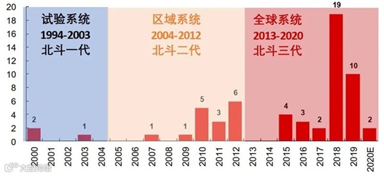 从1994年北斗一号系统工程立项,到如今北斗三号组网卫星发射任务完成,经历20多年,通过“三步走”之路,实现55颗卫星的研制发射。