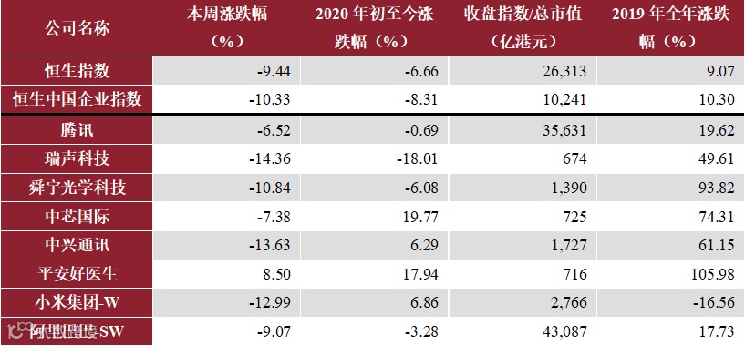 注:嘉楠科技于2019年11月首发上市,2019全年涨跌幅以上市首日发行价为基准;本周涨跌幅为1.17-1.31两周数据