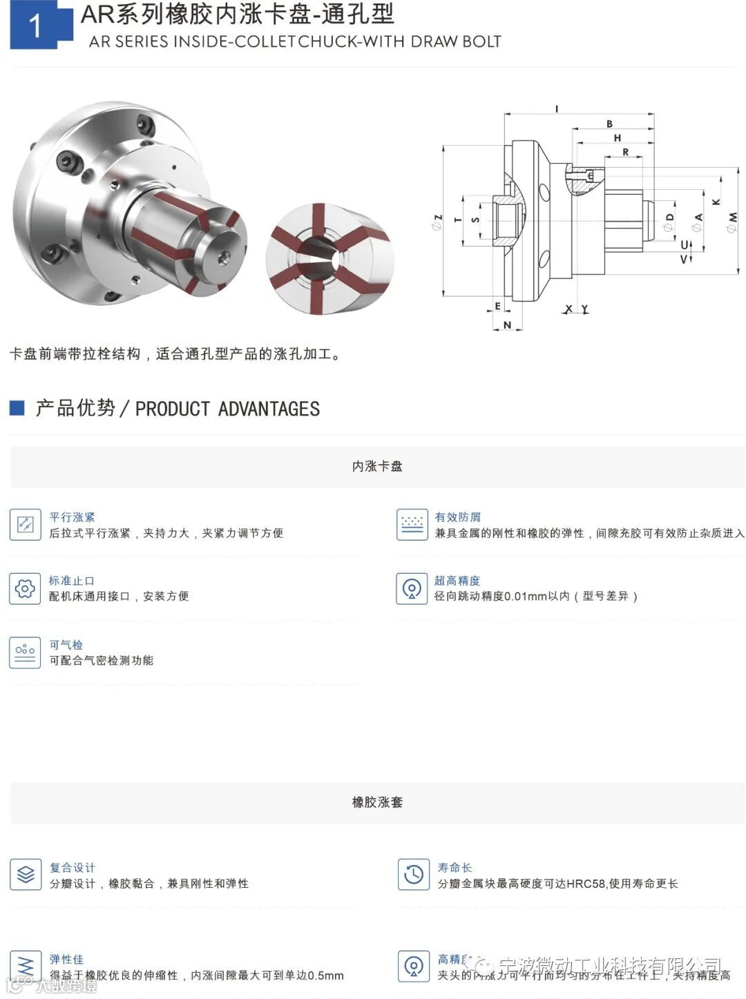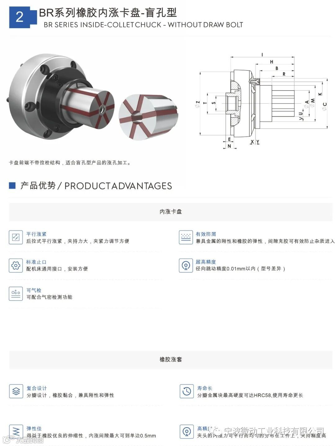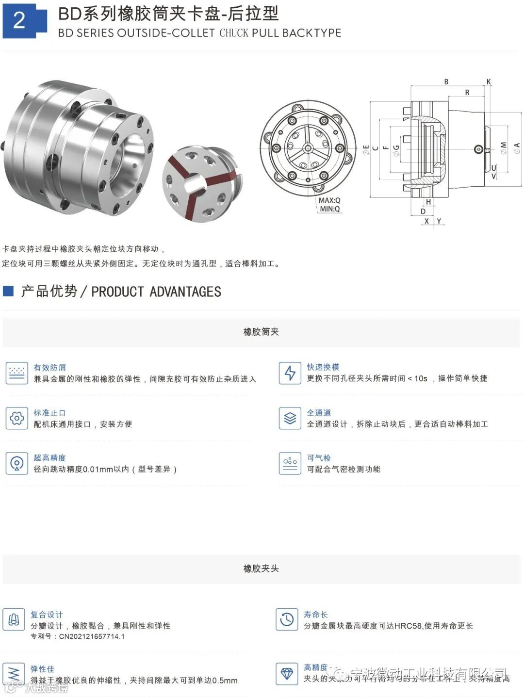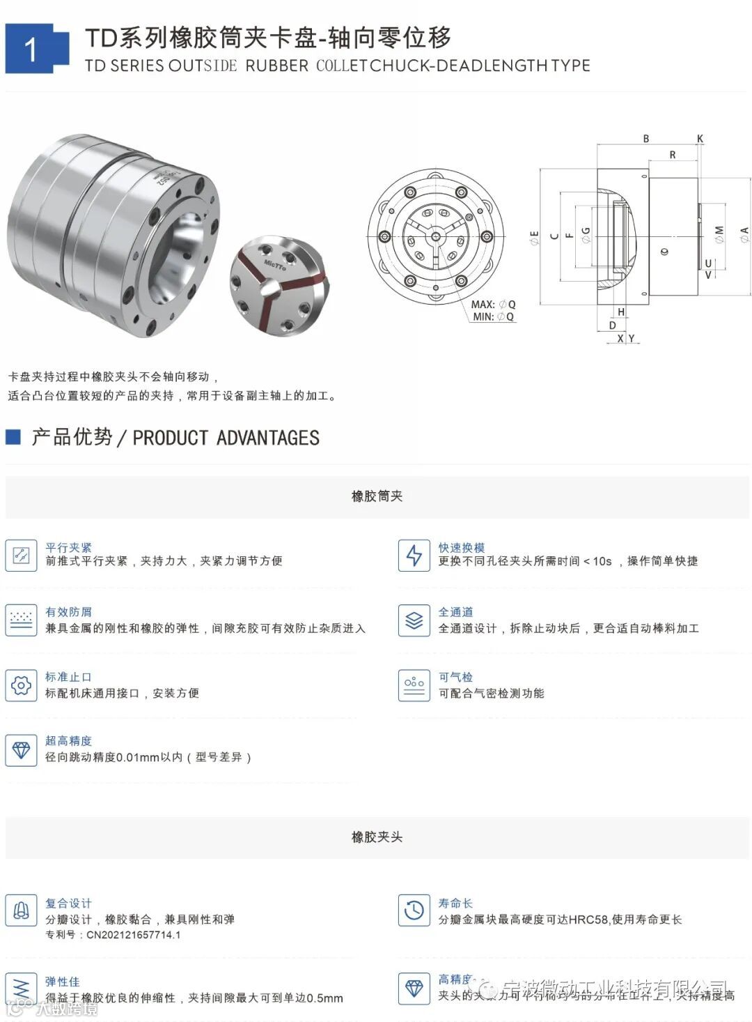 橡胶筒夹卡盘实现产品全包式夹持,在提供强大夹持力的同时还拥有超高的夹持精度。橡胶筒夹卡盘的橡胶型夹头相比金属式夹头有更大的弹性空间,产品装夹空间更大。