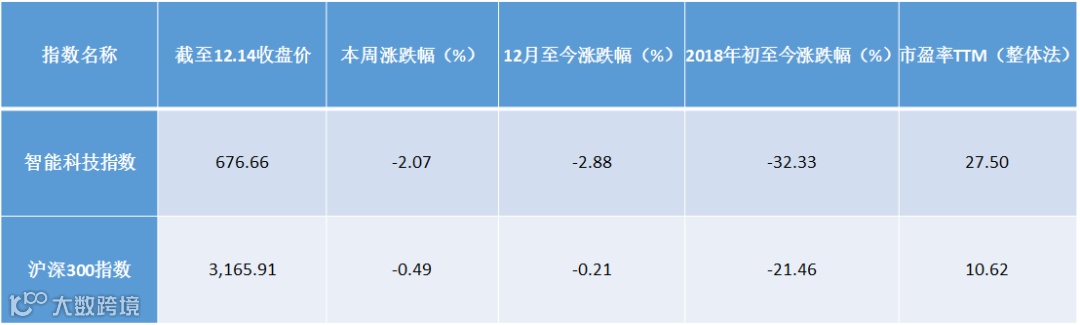 国际创投·智能科技指数(附《智能科技指数编制说明》)本周收跌2.07%,报676.66点,12月至今收跌2.88%,总市值为21,930亿元,市盈率TTM(整体法)为27.50,市盈率TTM中值为31.80。