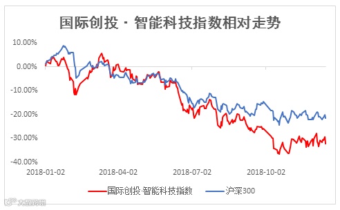 2018年初以来,国际创投·智能科技指数与沪深300指数的走势对比如下所示: