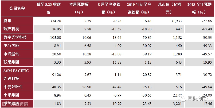 对于跨市场相关上市公司,我们分别从美股和港股市场,暂时选择了最具代表性的22只美股及10只港股,追踪其二级市场行情动态。