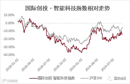 2018年初以来,国际创投·智能科技指数与沪深300指数的走势对比如下所示: