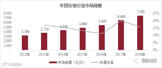 安防在我国经济发展进程中一直占据重要地位,中国安防行业平均年增长率超10%。根据中商产业研究院统计,2018年我国安防行业总产值约为7,500亿元,行业6年内的复合增速约为15%,随着安防市场需求增长,预计2019年我国安防行业总产值将达8,300亿元。