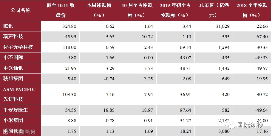 对于跨市场相关上市公司,我们分别从美股和港股市场,暂时选择了最具代表性的22只美股及10只港股,追踪其二级市场行情动态。