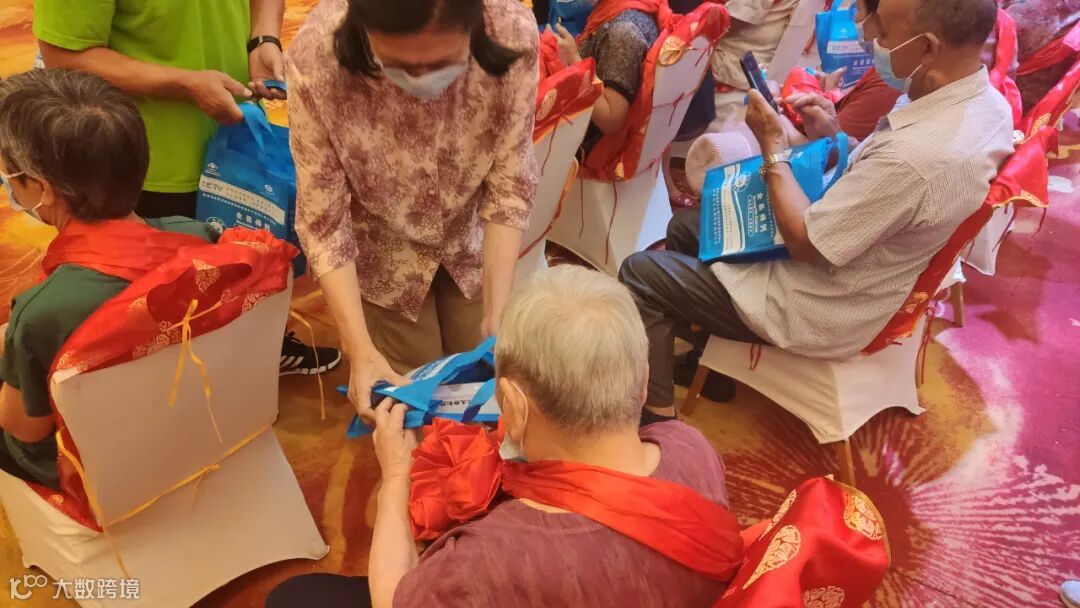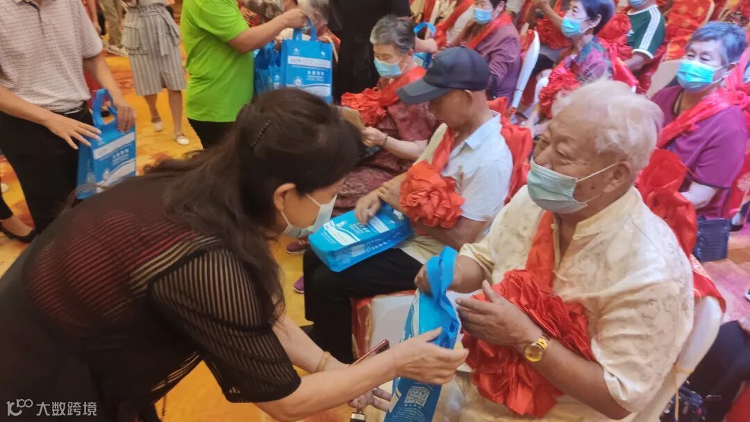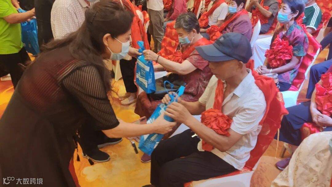 北京跃祖中医药研究所郎敏副董事长向老人赠送健康产品
