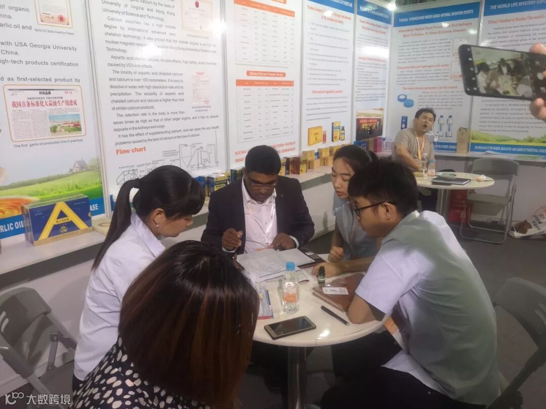 华佗中医药研究院院长张珂嘉与外国客户洽谈