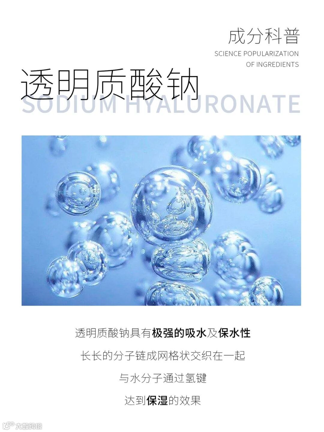 它的透明质分子能携带500倍以上的水分,为当今公认的最佳保湿成分,被广泛应用于保养品和化妆品中。