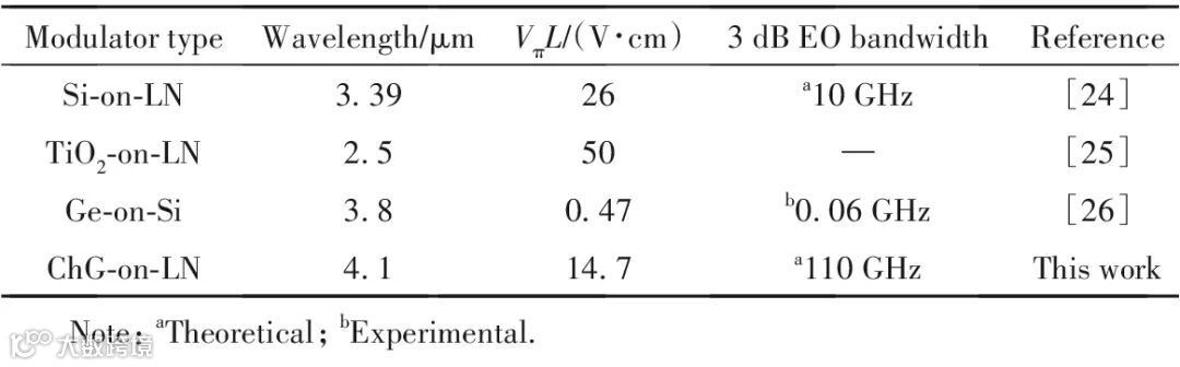 表1 不同异质集成平台的MIR电光调制器性能