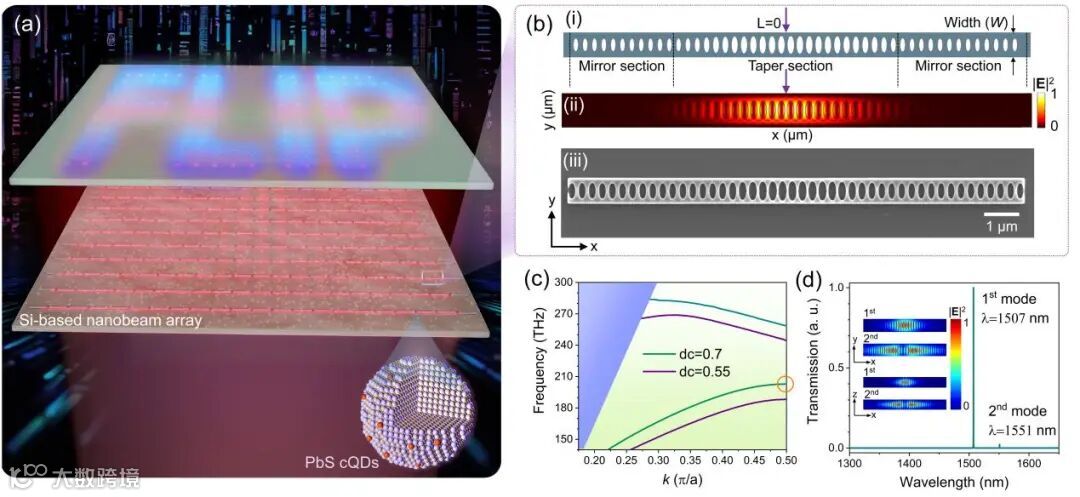 研究团队展示了一种结合高Q谐振腔和锌掺杂PbS CQDs的NIR纳米梁激光器。在 190 fs脉冲激发下,其展现出创纪录的低阈值(200μJ cm⁻²)和窄FWHM(0.29 nm)。该设计也可在ns脉冲下实现稳定的激光发射。CW泵浦进一步显示了腔滤波自发辐射,其线宽小于纳米级,并具有极高的稳定性。腔体设计的灵活性使其能够实现1350~1600 nm的波长发射覆盖范围,涵盖四个关键的电信波段(E、S、C、L)。该进展可为下一代光子学的变革性策略提供思路,并解锁了NIR片上激光器在光学互连、生物医学传感和电信等领域的应用可能性。