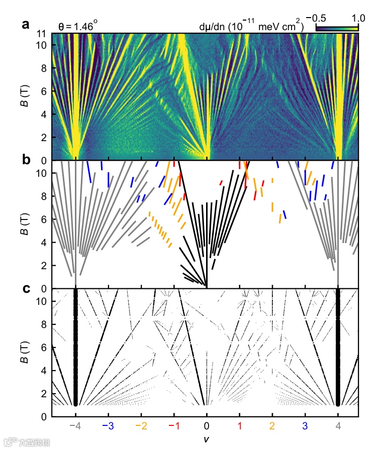 利用扫描单电子晶体管(SET)显微技术,在极低温(330 mK)下,对样品进行空间分辨的电学测量。通过同时测量交流与直流信号,绘制了电子可压缩性(dμ/dn)与化学势的空间分布,直接成像超摩尔域的周期性结构及其边界导电行为。