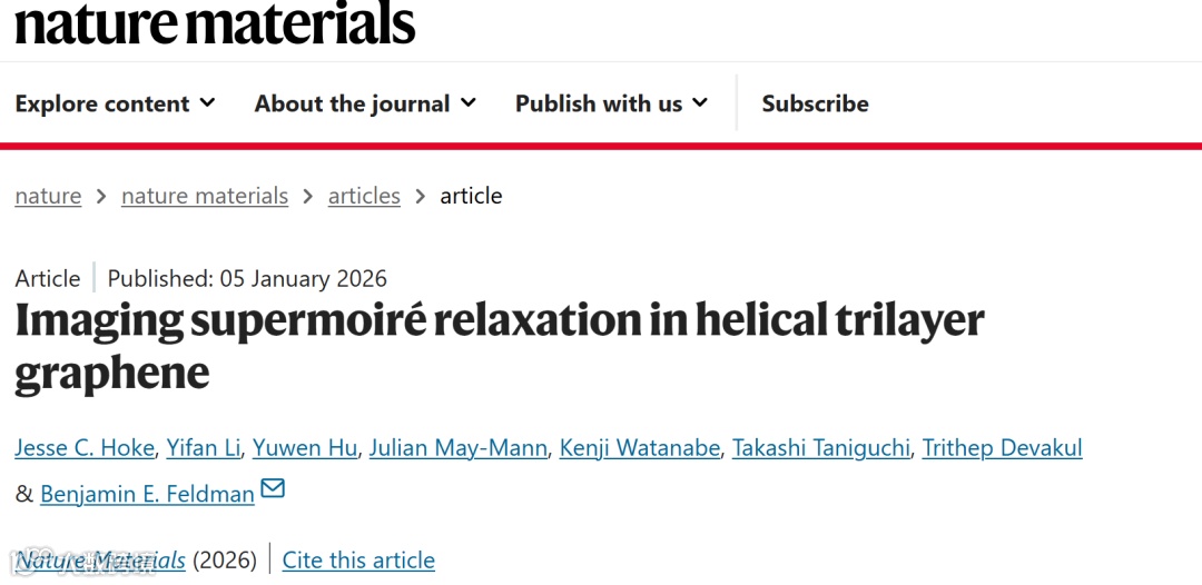 近日,斯坦福大学Jesse C. Hoke, Yifan Li, Yuwen Hu,Benjamin E. Feldman团队在Nature Materials上发文,利用扫描单电子晶体管Scanning SET显微技术,在螺旋三层石墨烯helical trilayer graphene,HTG中,直接成像了局域电子压缩率的周期性调制。