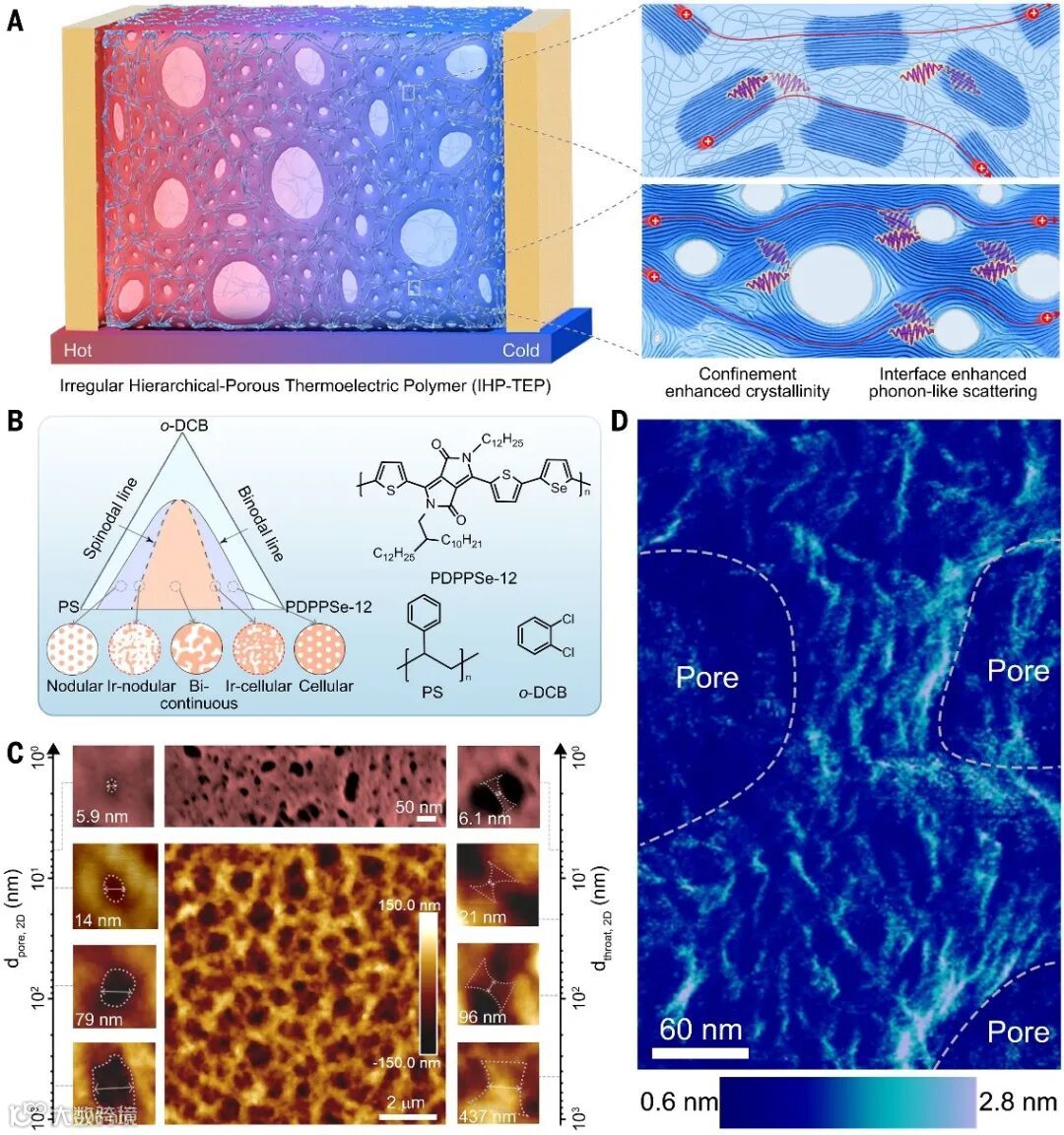图1. 不规则分级孔热电聚合物的设计理念与表征 © 2026 AAAS