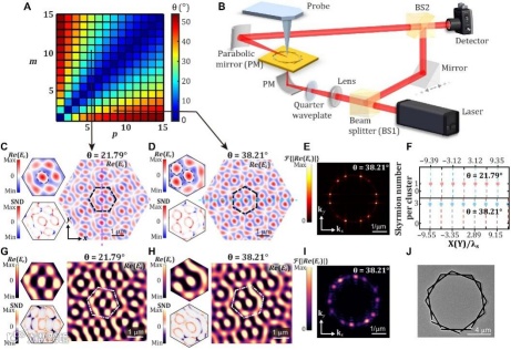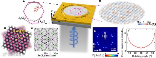 图1. 莫尔光学斯格明子簇的产生原理及机制。
