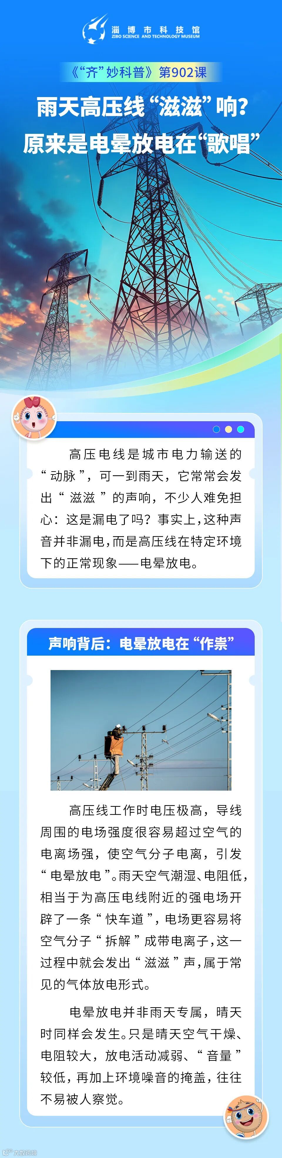 【可以听的科学课】《“齐”妙科普》第902课  雨天高压线“滋滋”响?原来是电晕放电在“歌唱” 淄博市科技馆