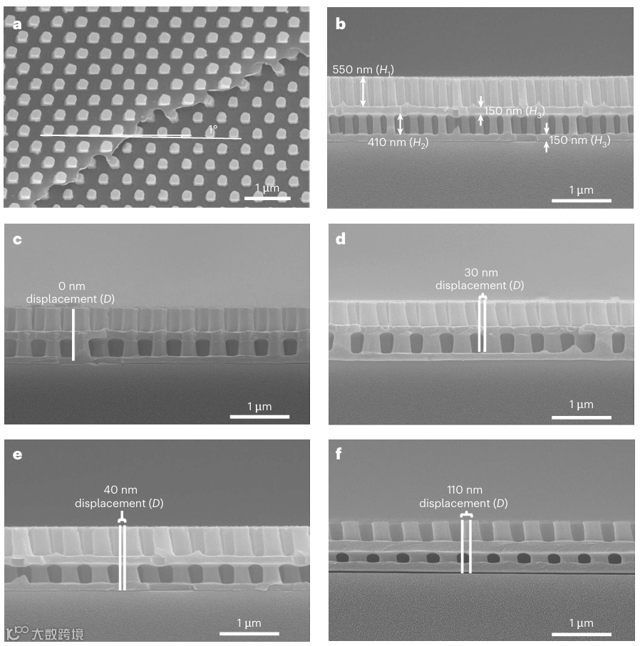图3:具有不同位移的双层纳米柱显微图。