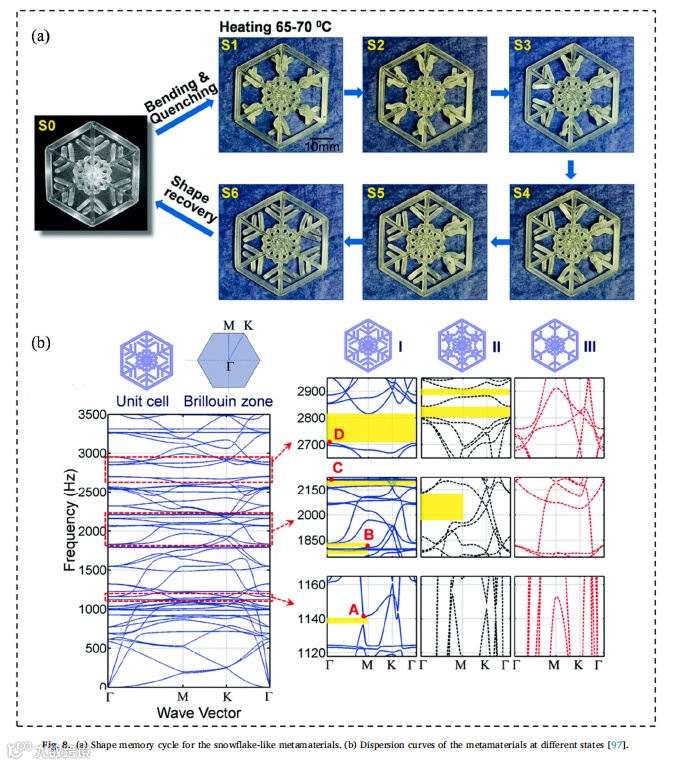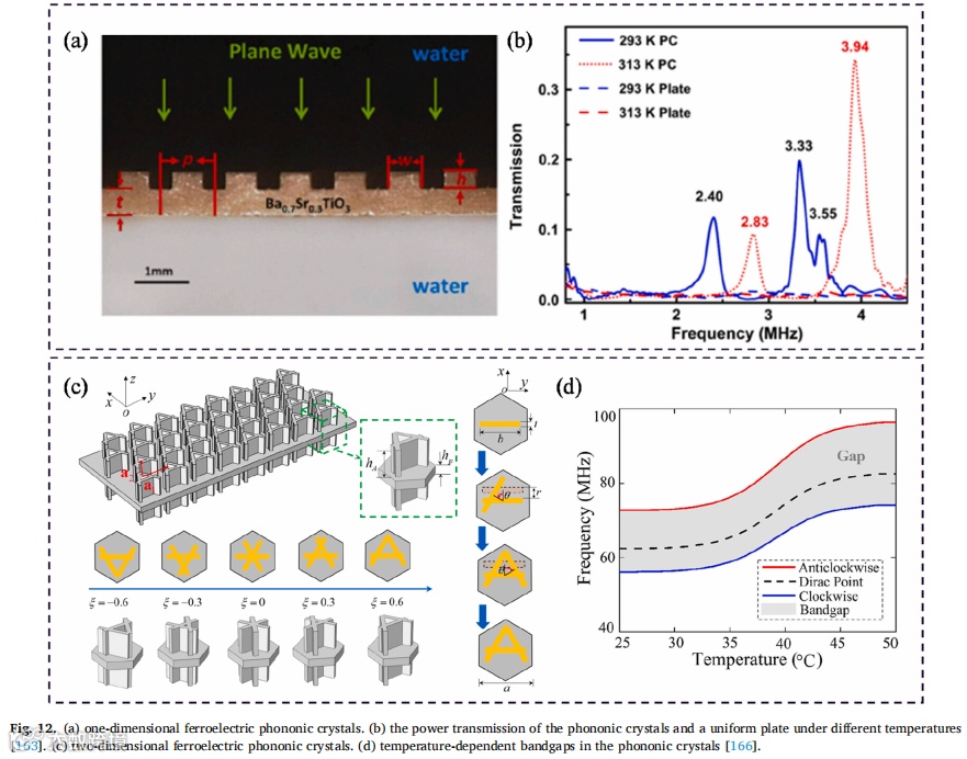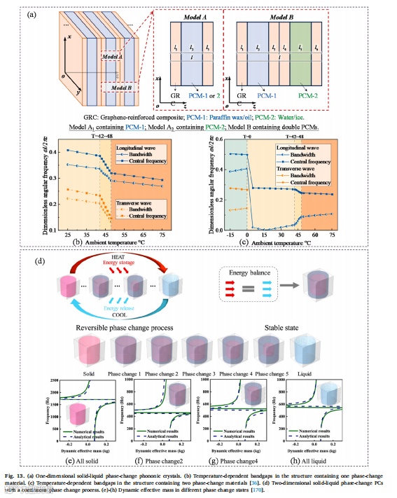 声子晶体(PCs)和超材料(MMs)作为通过定制微结构操控声波与弹性波的创新平台已崭露头角。然而,由于传统制造完成后其性能固定不变,它们在动态环境中的适应性受到限制,因此对可调谐和可重构结构的需求日益增长。相变提供了一种极具前景的机制,可实现PCs和MMs性能的显著变化。然而,目前亟需对基于相变的调控策略进行全面综述,以总结现有进展并指导未来发展。本综述系统评估了近年来基于相变的声子晶体和超材料在理论与实验方面的最新进展,重点关注的材料体系包括形状记忆合金(SMAs)、形状记忆聚合物(SMPs)、铁电材料以及液-固相变材料(PCMs)。文中详细阐述了关键机制,包括马氏体相变、玻璃化转变、铁电相变以及各类相变材料中的固-液相变。基于这些机制,本文批判性地评述了当前最先进的设计策略,涵盖基于SMA、SMP、铁电相变及固-液相变系统的主动波调控与新颖功能行为实现方法。此外,还全面探讨了用于预测相变材料性能的先进建模方法与实现目标结构的制造技术。最后,本文展望了未来发展方向,为开发高性能声子晶体和超材料提供了详尽的指导建议。 |