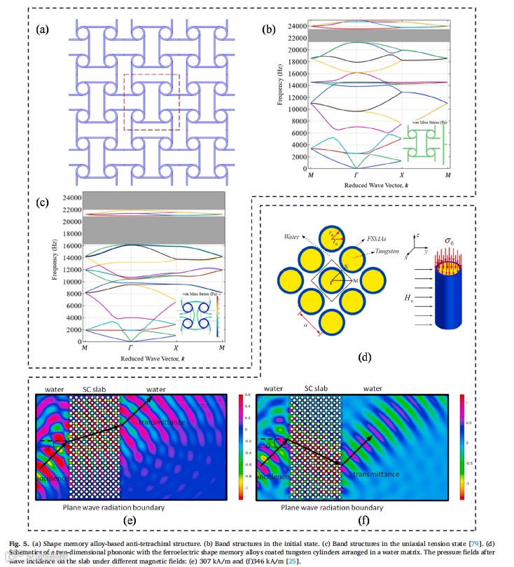 总之,基于相变的声子晶体(PCs)和超材料(MMs)为动态调控波传播及有效实现功能特性提供了创新平台,已在广泛的工程应用中展现出巨大潜力。本综述全面探讨了利用多种相变机制(包括形状记忆合金、形状记忆聚合物和铁电材料中的固-固相变,以及固-液相变)实现PCs和MMs前所未有的可调性与可重构性的基本原理与设计策略。同时,本文也系统回顾了用于预测相变材料性能和制造目标结构的先进建模与加工技术。此外,我们还指出了若干亟待解决的关键开放性问题与挑战,包括高精度制造的需求、材料在循环操作下的长期稳定性、经济可行性保障,以及在单一系统中集成多种功能的能力。通过将材料创新与实际工程挑战相结合,基于相变的PCs和MMs有望彻底革新自适应波调控技术,为下一代高性能器件铺平道路。这些PCs与MMs领域的创新在声学、光学、传感和能量收集等多个领域具有广泛的实际应用前景,尤其在需要精确、可控地实现可调波操控的场景中至关重要。 |