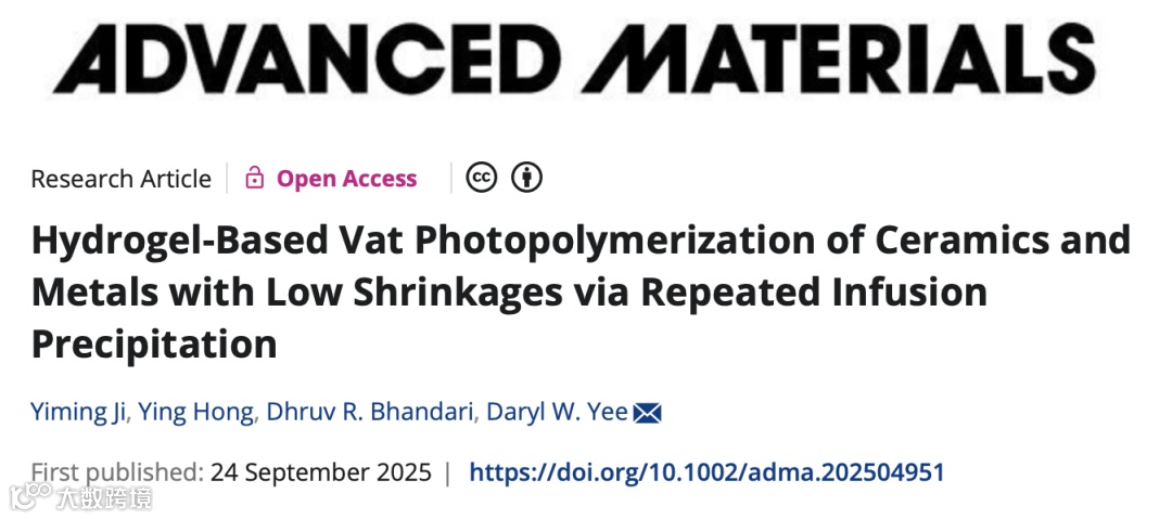 近年来,利用金属盐溶液的方法展现出了潜力。该方法兼具浆料法的组分多样性和杂化树脂法的精细特征尺寸。研究团队此前开发的水凝胶灌注增材制造(HIAM) 技术即属此类,实现了“先打印后选材”的新范式。然而,该方法及其它金属盐方法仍普遍存在高收缩率(50–90%) 的问题,导致零件翘曲、开裂和孔隙率高,难以实际应用。