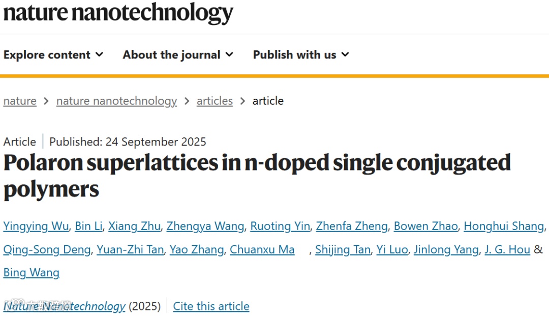 1.本研究首次在实空间直接观测到高n型掺杂单根共轭聚合物中形成的准一维电子极化子超晶格,并揭示了其依赖于掺杂浓度的周期性。