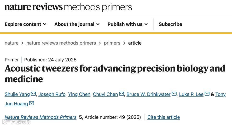 由杜克大学牵头,联合哈佛大学医学院、宾夕法尼亚大学、北卡罗来纳州立大学、布里斯托大学等多所研究机构近期发表关于声镊综述文章于国际权威期刊《Nature Reviews Methods Primers》,研究团队系统总结了声镊的基本原理、典型装置结构以及其在精准生物学和医学中的关键应用路径。文章指出,声镊技术凭借声辐射力与声流的耦合效应,可实现对微纳尺度颗粒、细胞、组织乃至模式生物的非接触式精密操控,具备跨尺度、高通量、生物相容性强等显著优势,为相关领域提供了新的实验范式与工程手段。