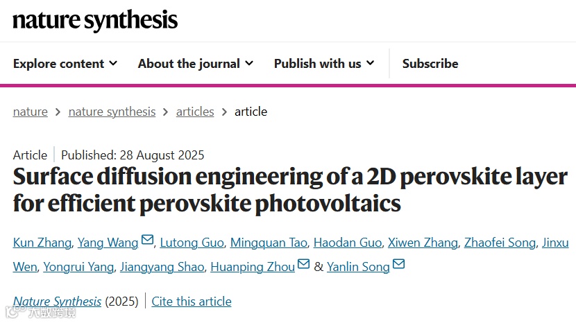 Zhang, K., Wang, Y., Guo, L. et al. Surface diffusion engineering of a 2D perovskite layer for efficient perovskite photovoltaics. Nat. Synth (2025).