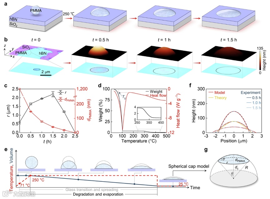 图3 hBN表面PMMA球帽的原位受热塑形方法