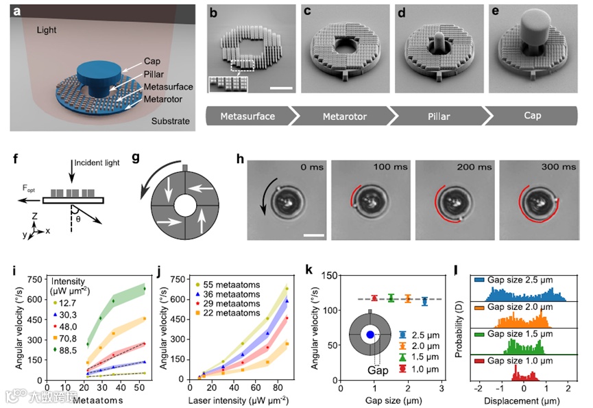 近日,哥德堡大学的Giovanni Volpe团队,提出了一种新的方法,利用光学超表面实现对微观机器的局域驱动。这些器件可通过标准光刻工艺制造,并可无缝集成于芯片之上,其尺寸可缩小至几十微米,同时实现亚微米精度的运动。作为原理验证,作者展示了由单个带有超表面的驱动齿轮(在平面光波激发下工作)驱动的微型齿轮传动系统。此外,作者还研制了一种多功能的齿轮—齿条微机器,能够实现旋转运动向平动的转化、周期性运动,以及对微型反射镜的操控以实现光的偏转。该片上制造工艺使并行化与集成过程更加简便。借助光这一普遍存在且易于调控的能量来源,这些微型化的超机器实现了精确的控制与运动,为微纳尺度系统开辟了新的可能性。相关工作发表在《Nature Communications》上。(刘帅)