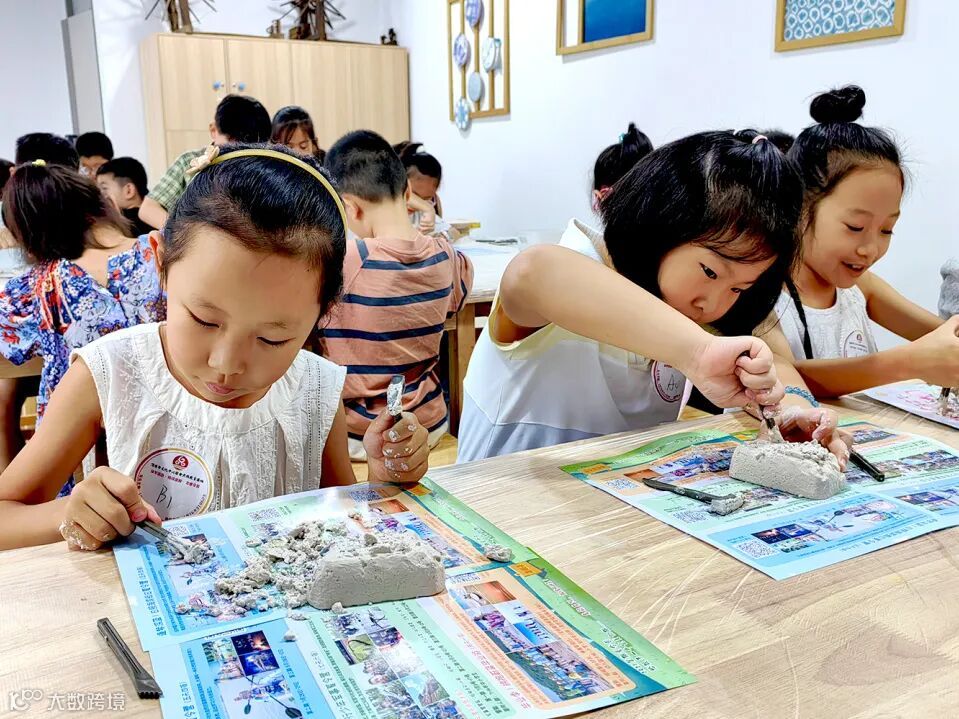 创意制作环节中,同学们了解了青铜器的发展起源、从青铜器的历史用途到其精美的造型特点等知识。接着同学们手持小工具,小心翼翼地敲打、挖掘,仿佛考古学家在探寻珍贵的历史遗迹。