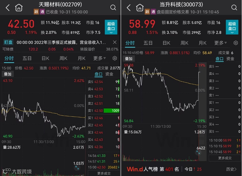 天赐材料、当升科技尾盘集合竞价阶段拉升幅度均超2%,成交额均超7500万元。