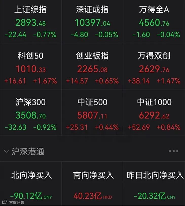 10月收官日A股出现分化,沪指震荡走弱,失守2900点,创业板指小幅反弹。截至收盘,沪指跌0.77%,深成指跌0.05%,创业板指涨0.65%。沪深两市今日合计成交8832亿元。