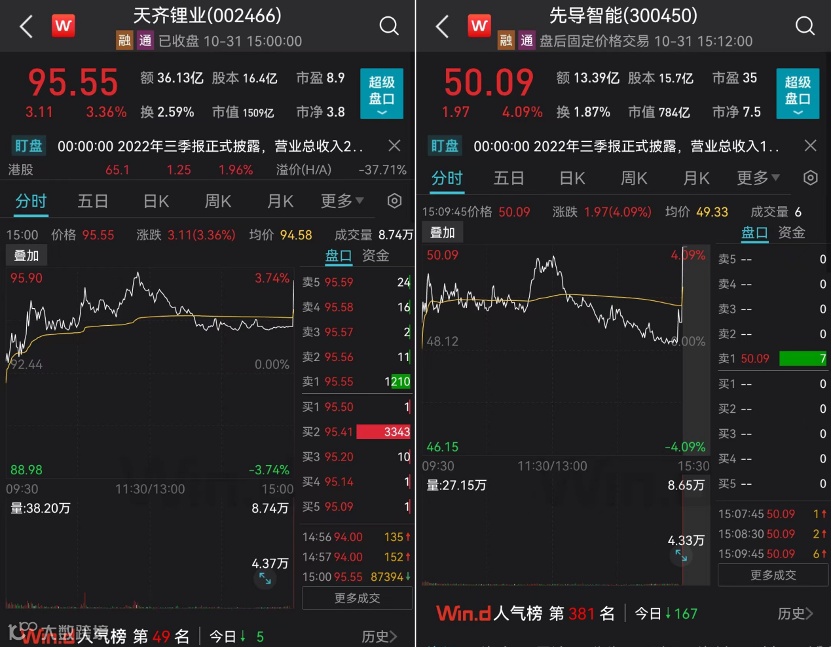 Wind数据显示,天齐锂业集合竞价阶段拉升逾1.5%,成交额超8.35亿元。先导智能集合竞价阶段拉升近3%,成交额超4.33亿元。