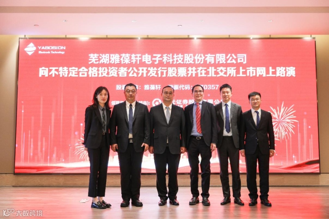 11月7日,芜湖雅葆轩电子科技股份有限公司(证券简称“雅葆轩”)向不特定合格投资者公开发行股票并在北交所上市网上路演在中国证券报·中证网举行。