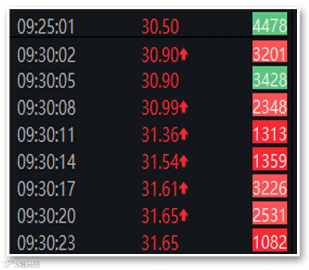 Wind成交明细显示,彤程新材今日从开盘到涨停,仅用时20秒。彤程新材最新报31.65元/股,市值189亿元。