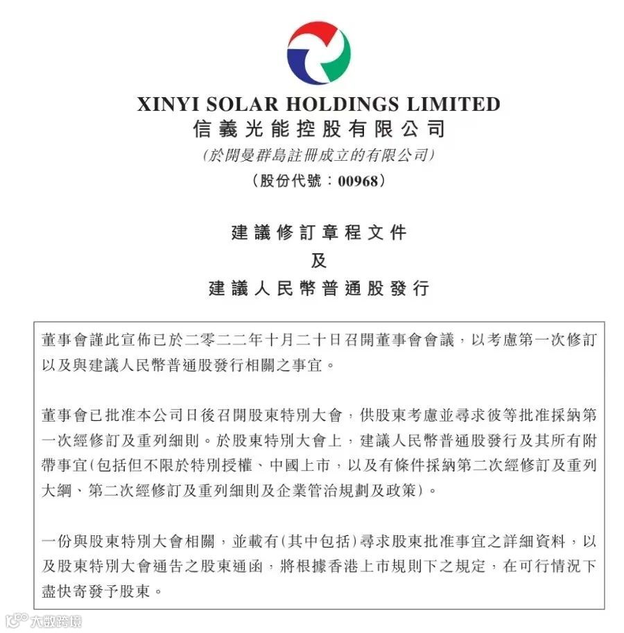 对于回归A股上市的原因,信义光能表示,在A股上市可吸引规模庞大的投资公众兴趣,有助于提升公司股票流通性及估值水平。同时,公司内在价值还可扩至最大,公司估值亦可与其他在创业板上市的光伏企业进行比较及评估。