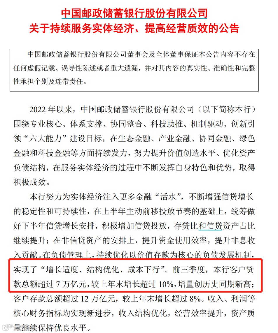 、绿色贷款、普惠金融贷款、涉农贷款等多方面。此前,邮储银行已于10月10日披露相关公告。