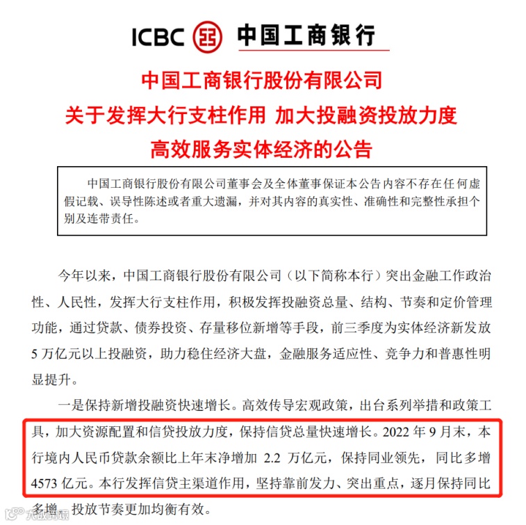 工商银行表示,将进一步加大对实体经济支持力度,继续保持良好经营态势,为经济发展和全面建设社会主义现代化国家贡献力量。