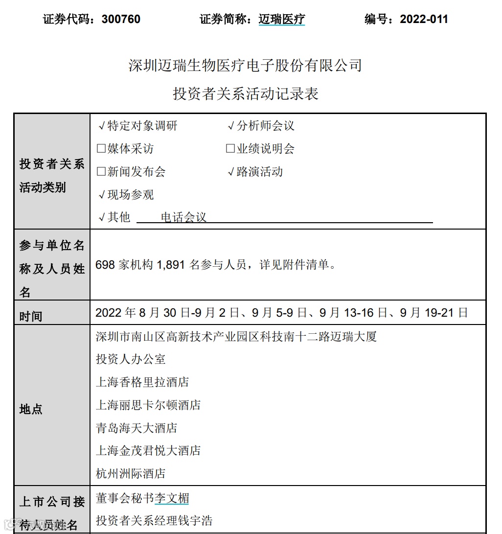 图片来源:迈瑞医疗公告