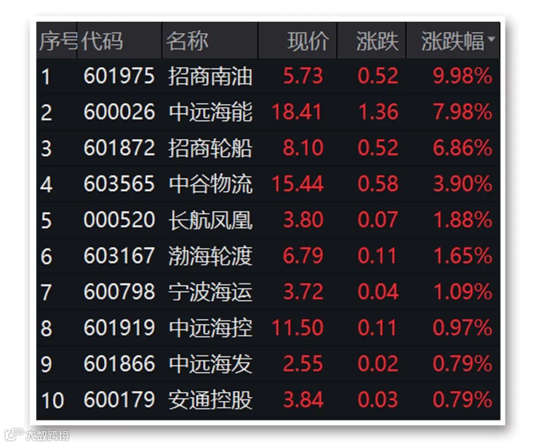海运股今日走强,招商南油涨停,中远海能、招商轮船涨超6%,中谷