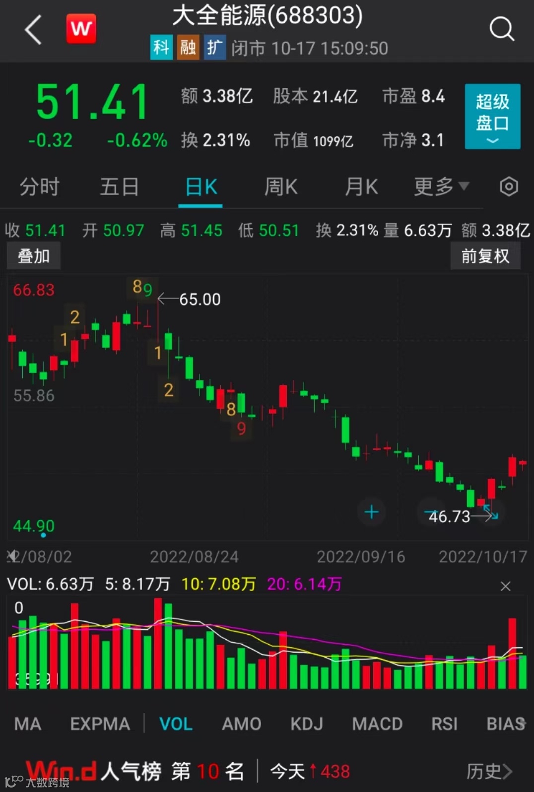 据记者统计,大全能源今年以来披露3份采购合同,采购额合计达683.15亿元。截至10月17日,大全能源股价报51.41元/股,市值1099亿元。