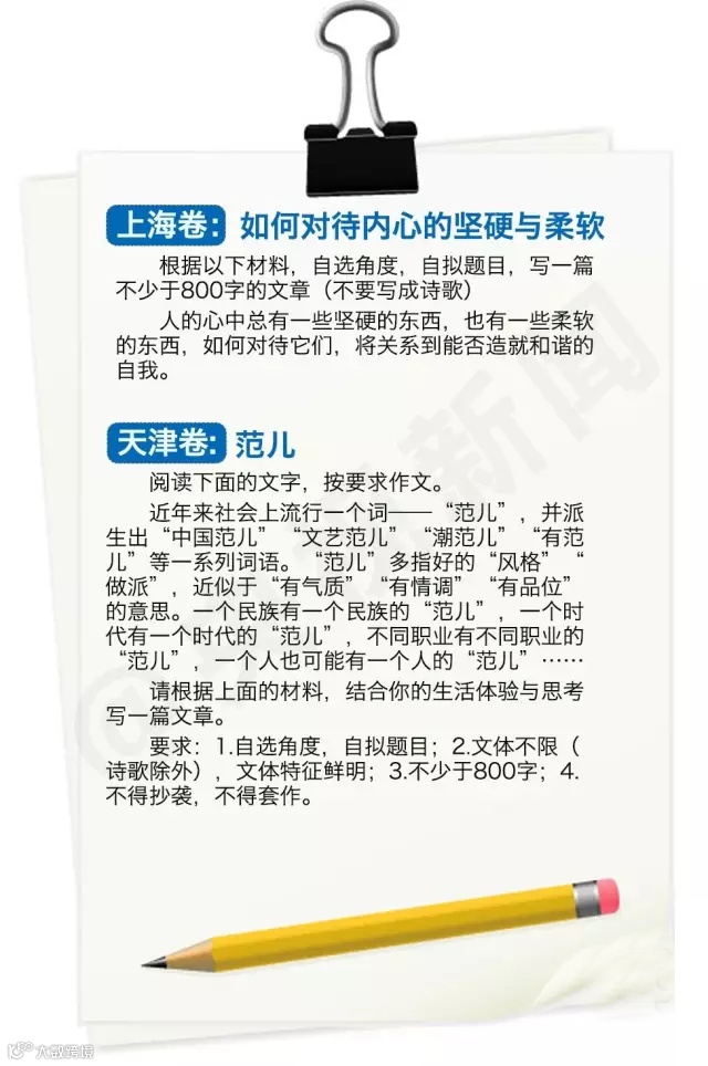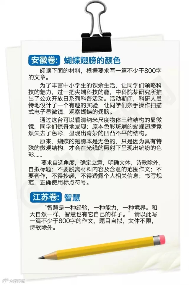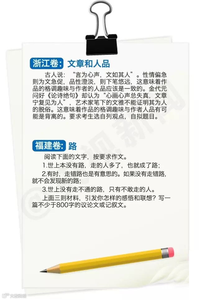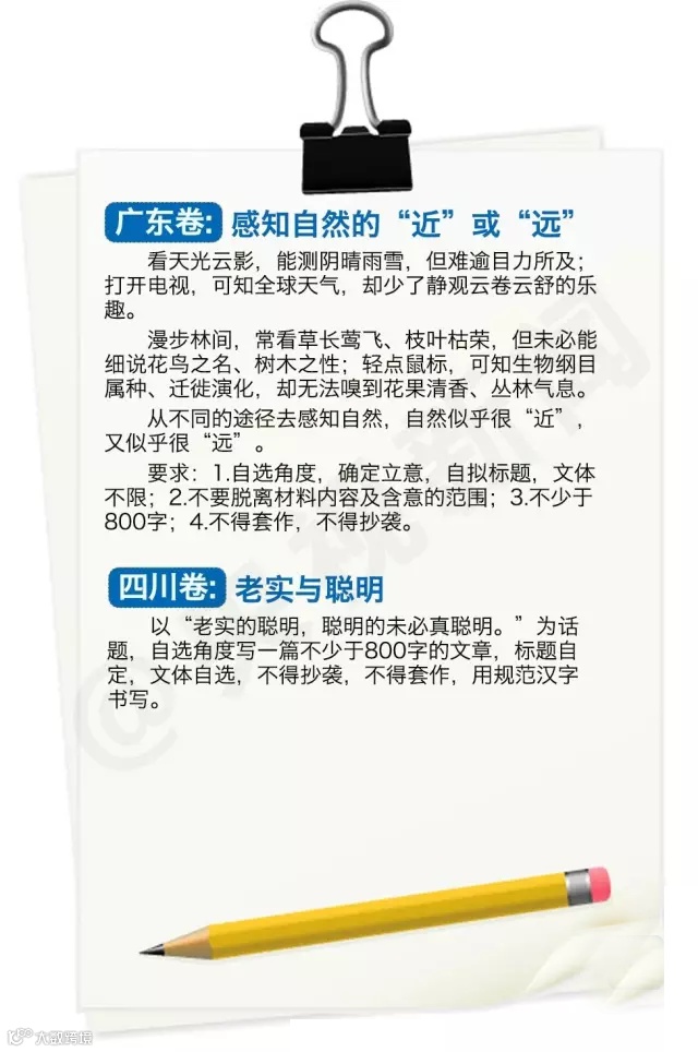导读: 2015年全国高考共有942万名考生走进考场。随着语文科目考试的结束,各省市公布了高考作文题目,并
