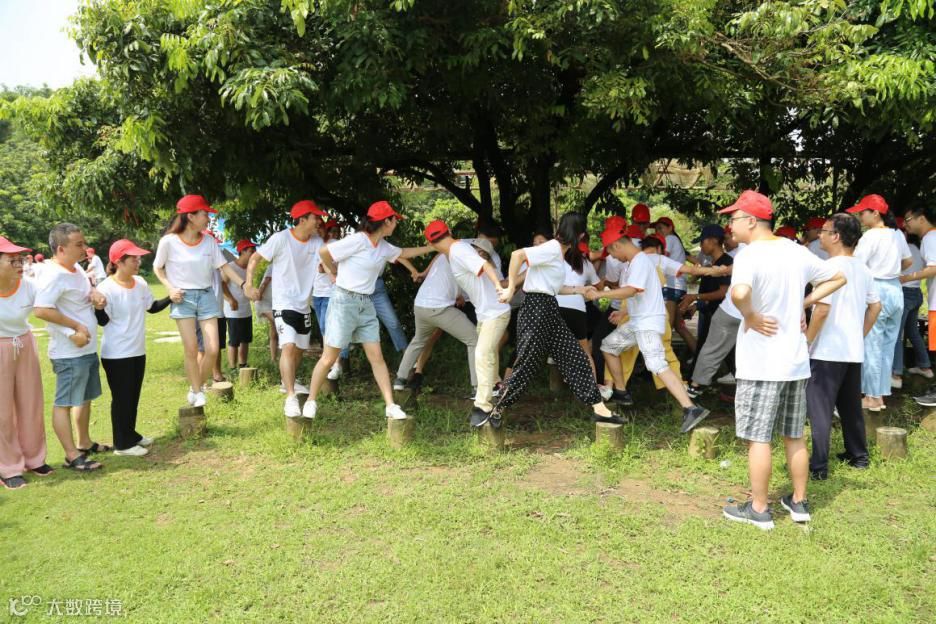 梅花桩:每一大组的四小队队员,同时手拉手从梅花桩上通过,并且所有队员都必须过起点、中点和终点的三个桩点后,四小队同时从梅花桩上落下才视为成功完成。在这个项目中必定有多人同时踩到同一个梅花桩的情况,如何解决这个主要矛盾成为了完成该项目的关键点。最终,只有额外增加了难度,全程禁止说话的红队完成了任务,他们的方法是:预留时间队长间充分讨论可行方案,明确了四队不可同时行进,只能两两上场后,再由队长将方案清晰的转达给队员,磨刀不误砍柴工,体现了事先沟通的重要性。有效沟通,共同协作,目标清晰,实现共赢。
