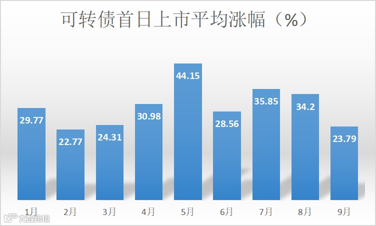 截至9月30日,共有97只可转债上市,首日上市平均涨幅达31.94%,无一“破发”,涨幅最高的永吉转债上市首日涨276.16%,涨幅最小的友发转债上市首日涨幅为4.07%。