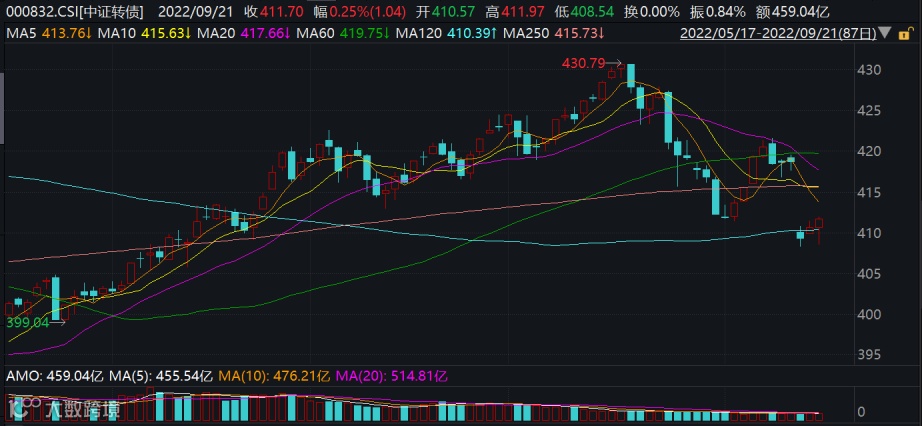 二级市场上,截至9月21日收盘,中证转债指数涨0.25%,报411.70点。9月19日,中证转债指数最低至408.92点,创近两月新低。业内人士表示,短期内波动加剧或将成为偏股型品种的常态。