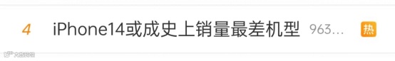 9月26日,“iPhone 14或成苹果史上销售最差机型”冲上微博热搜。