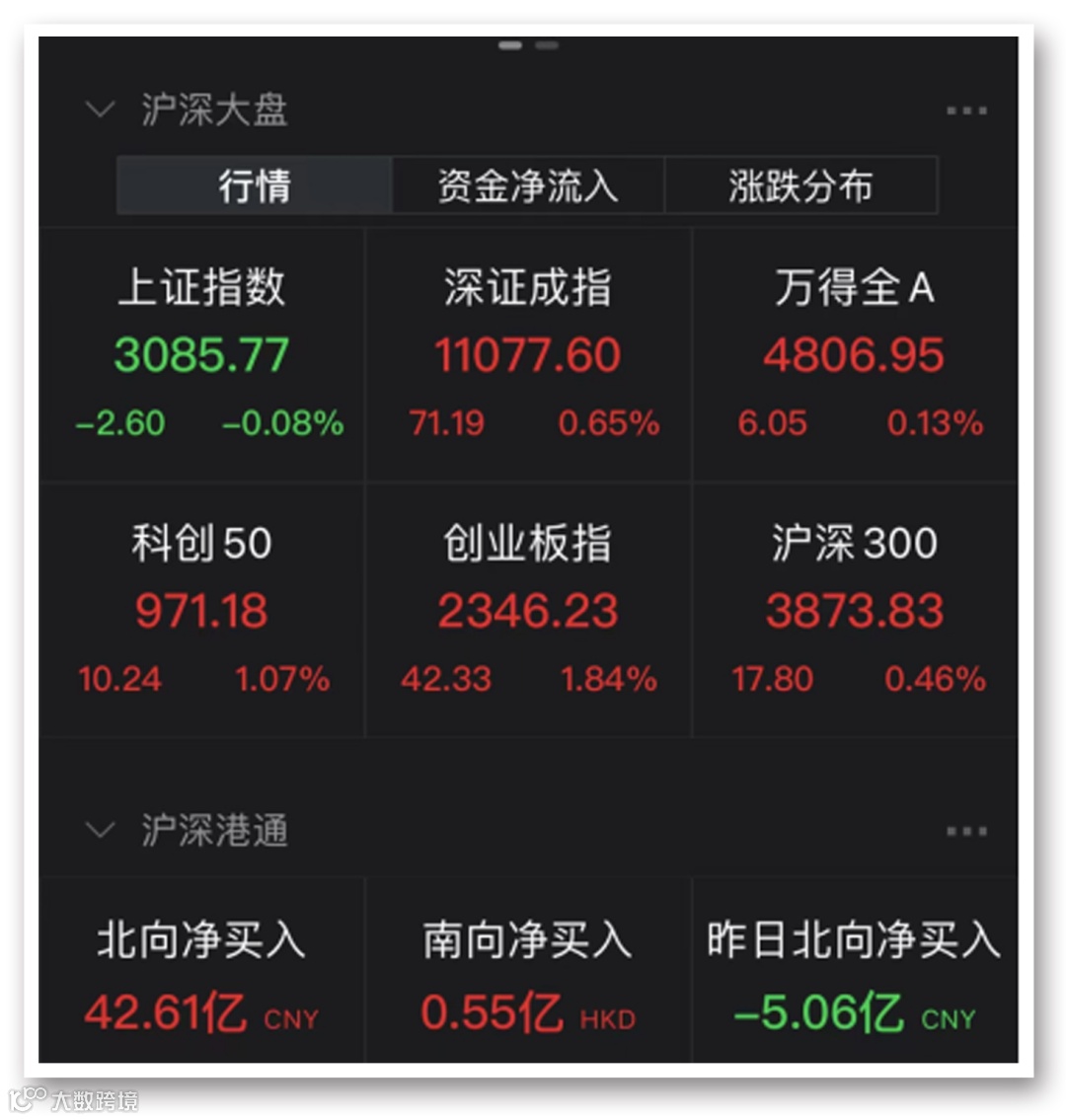 截至上午收盘,上证指数跌0.08%、深证成指涨0.65%、创业板指涨1.84%,北向资金净流入42.61亿元。
