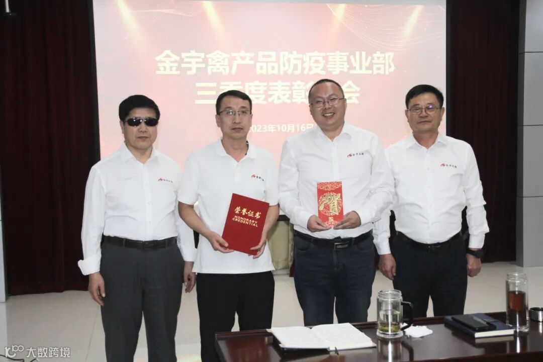 丹桂飘香秋意浓,金秋时节硕果丰。10月16日,金宇禽产品防疫事业部2023年第三季度表彰大会在扬州优邦生物药品有限公司隆重召开。一分耕耘一分收获,辛勤播种必将硕果累累,2023年第三季度在金宇禽产品防疫事业部全体员工齐心协力、奋力拼搏下,圆满达成经营目标。