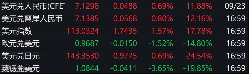 此外,当地时间9月23日,英镑兑美元触及30多年来的新低,