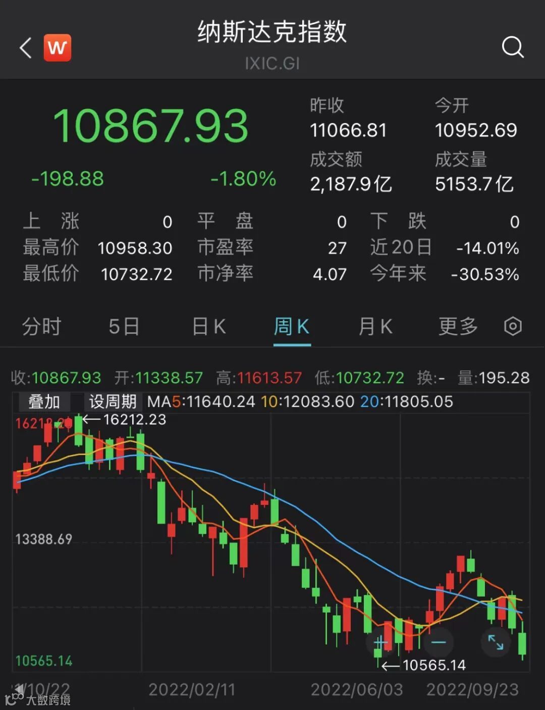 上周跌超4%的道指本周再次累跌4%,跌穿6月的年内低位并创22个月新低。