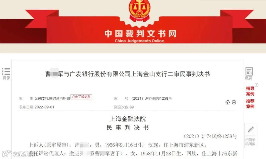 值得一提的是,曹某表示,在此过程中,银行工作人员从未告知该产品系中金鲁合基金,曹某自始认为该产品系广发银行金山支行发行的理财产品。此外,为掩盖上诉人购买的就是银行理财产品的真相,广发银行金山支行将客户信息在系统里做了更改。